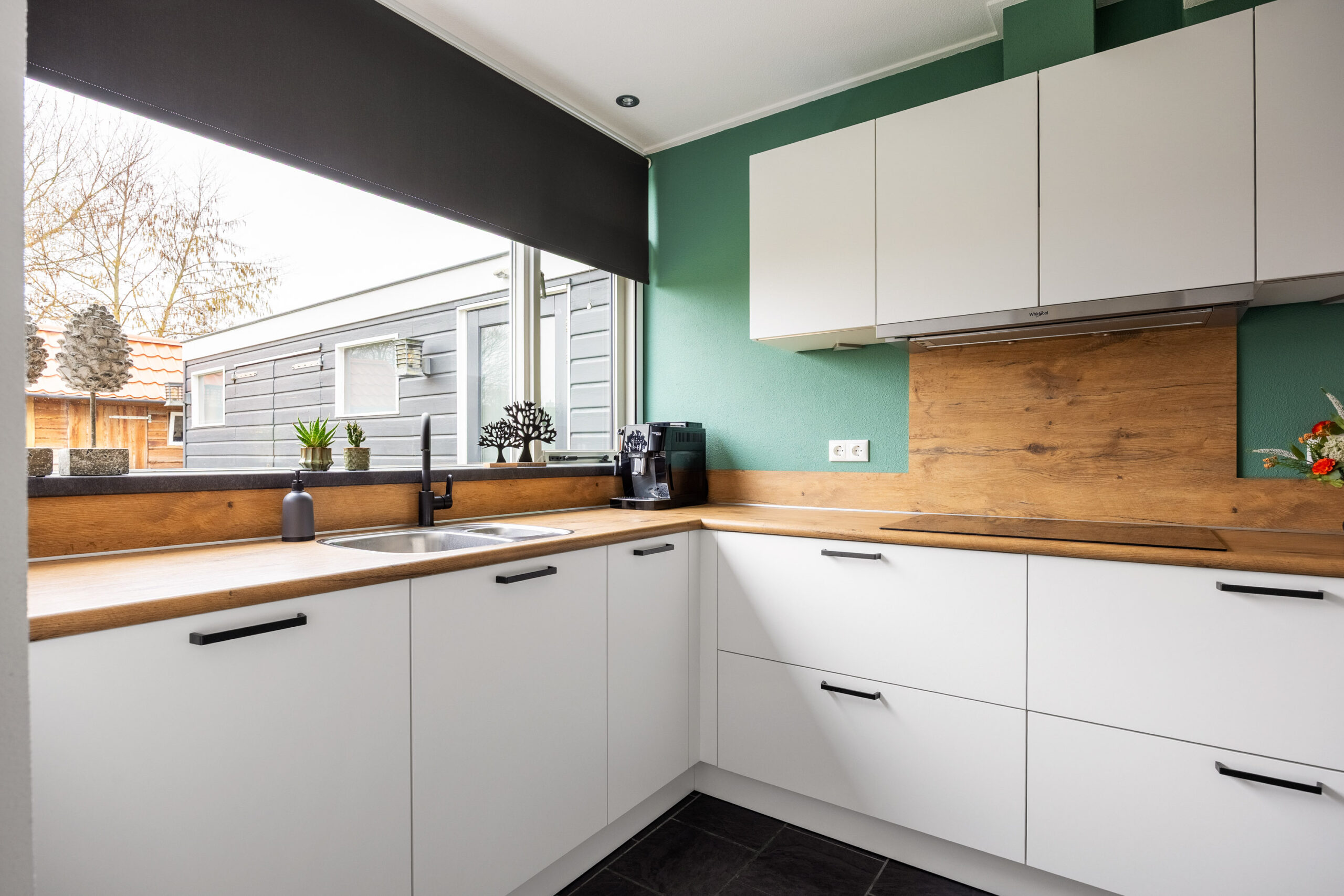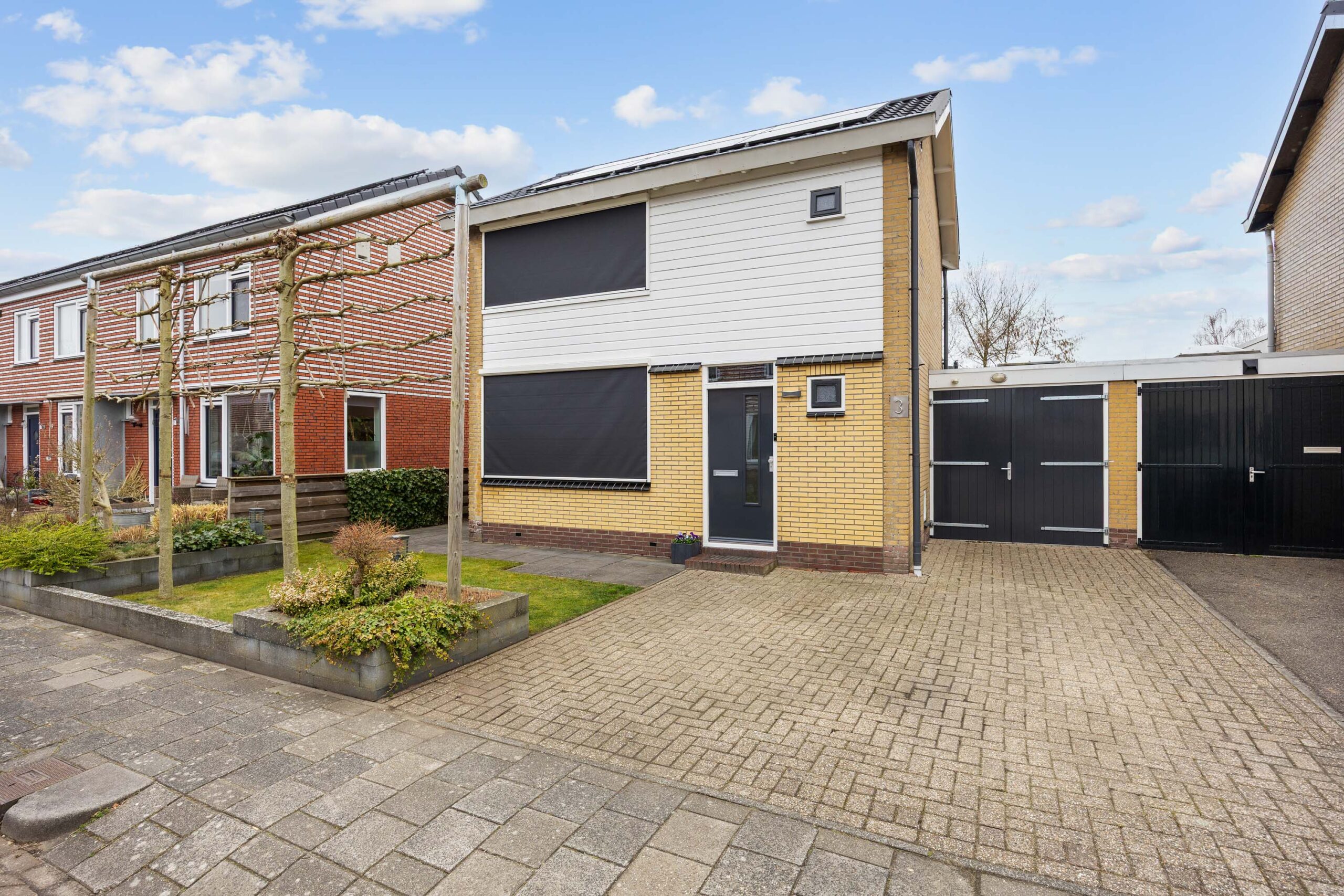 – Elektrische screens (zonwering) aan de voorzijde van de woning