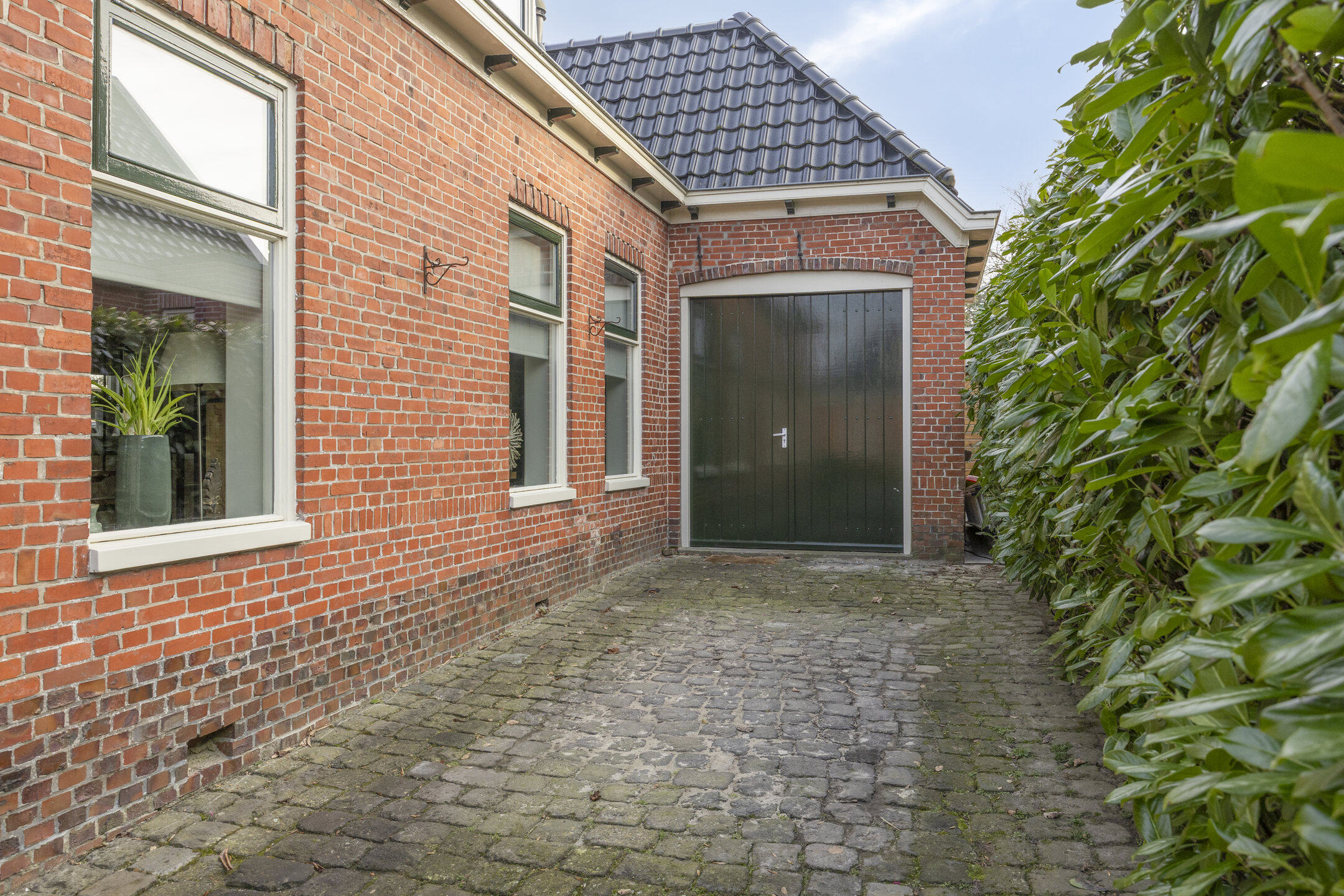 Tevens is er toegang tot de inpandige berging/schuurruimte/garage van ca. 10 m² met openslaande deuren naar de oprit en een loopdeur naar de tuin. De meer dan royale oprit biedt ruimte voor meerdere voertuigen.