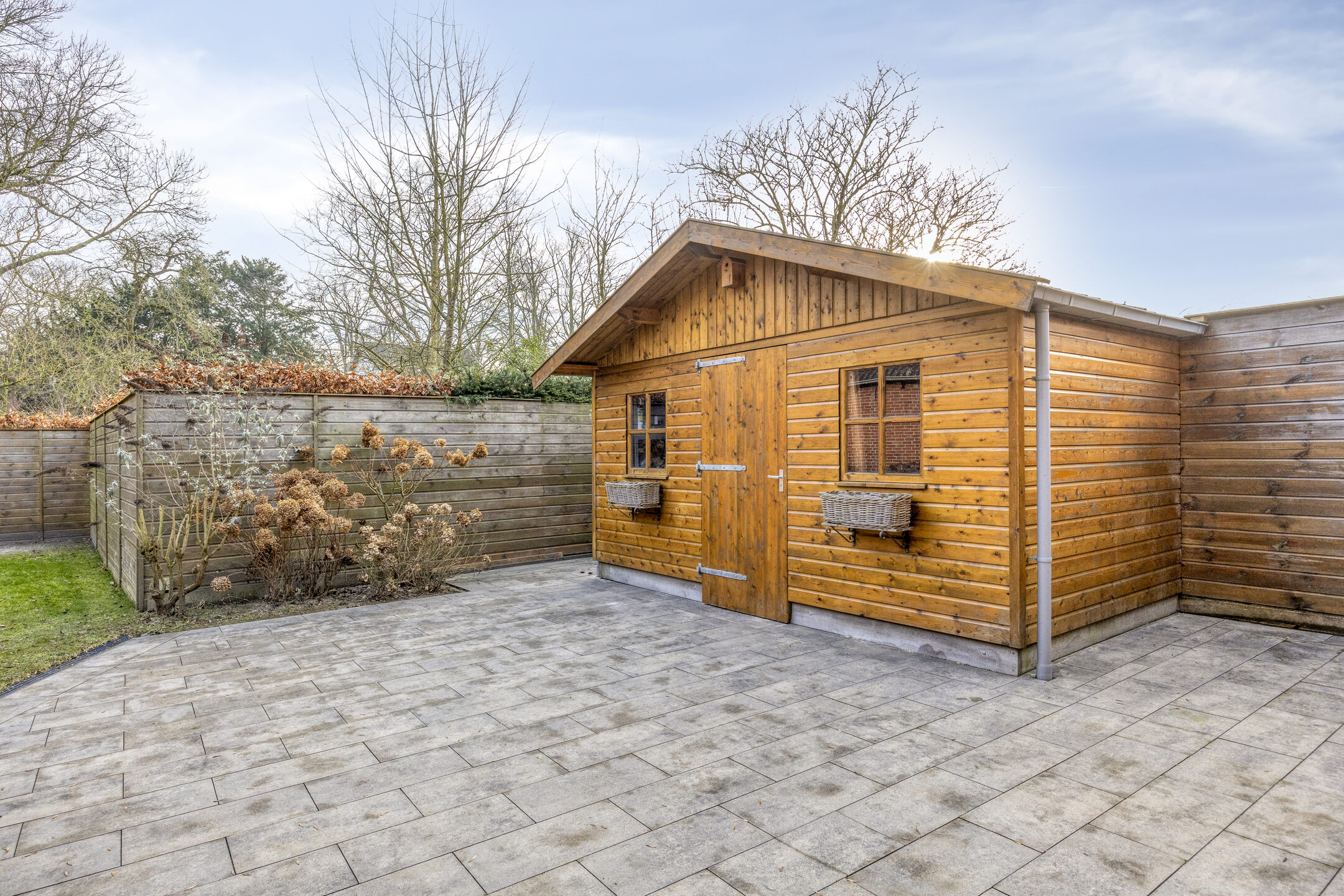 De verrassende tuin is gesitueerd op het zonnige zuidoosten en beschikt over een achterom, gazon, borders en een ruim terras aan de woning. Daarnaast is er nog een ruime vrijstaande houten berging en een gezellige veranda voor heerlijke zomeravonden.